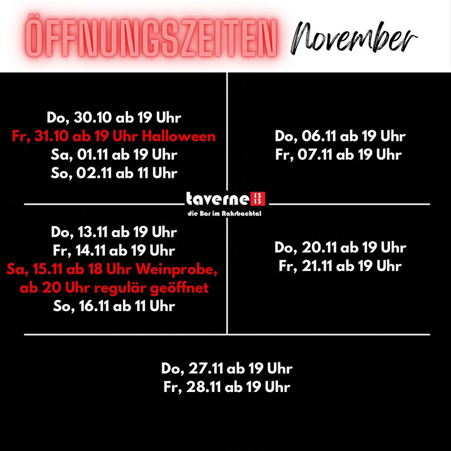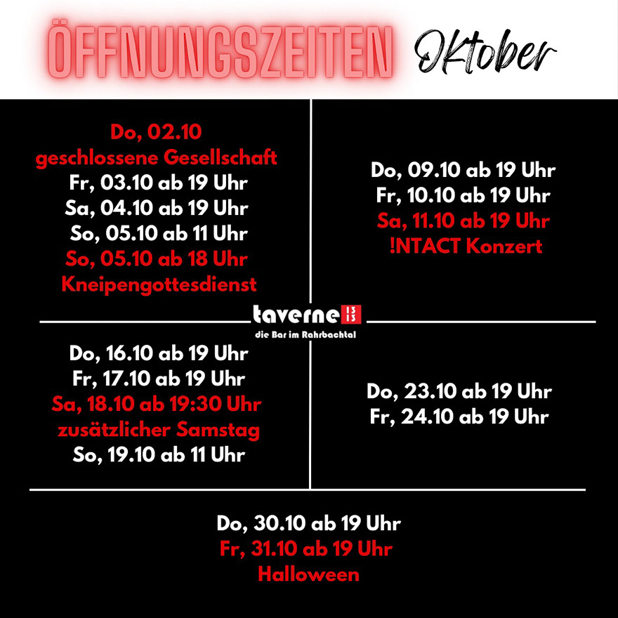 Öffnungszeiten taverne 1313