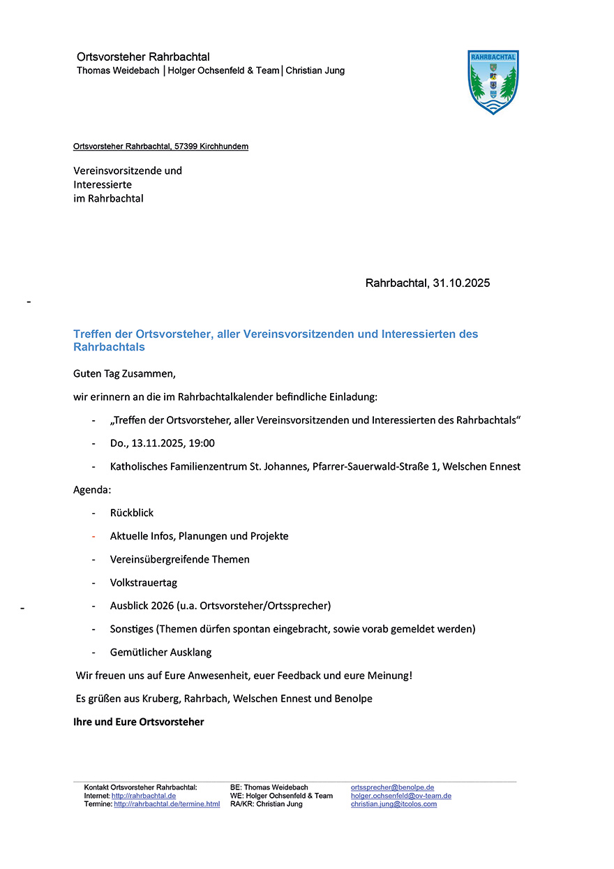 Gemeinsame Webseite der Orte Kruberg, Rahrbach, Welschen Ennest und Benolpe