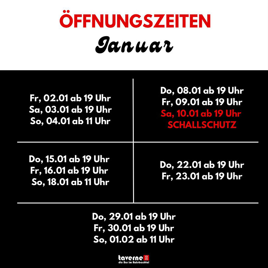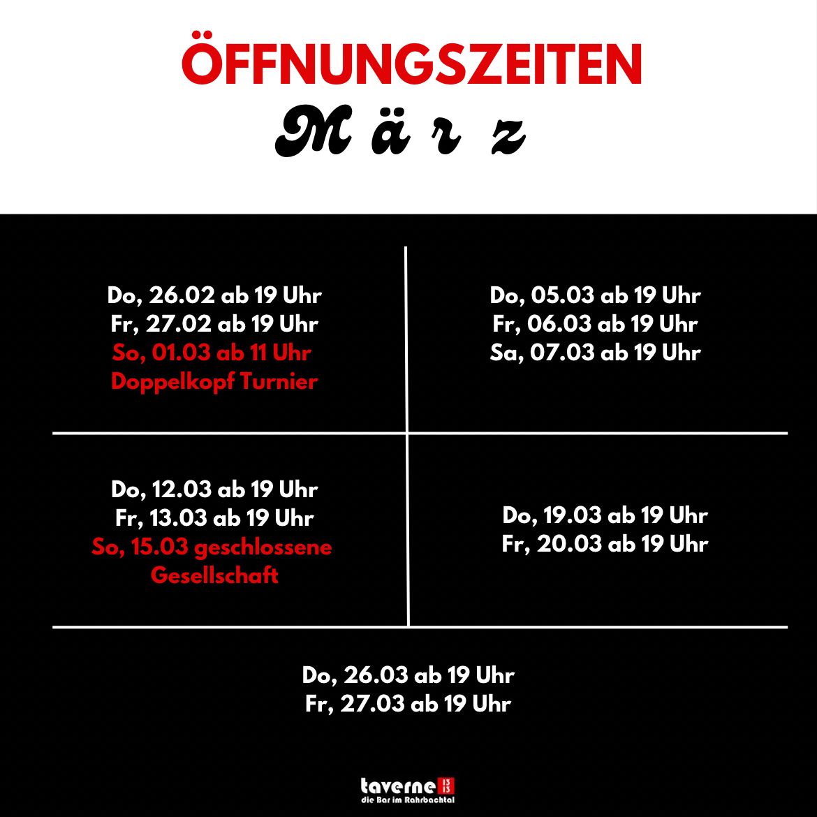 Öffnungszeiten taverne 1313